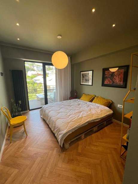 Сдается 3-комнатная квартира площадью 100 кв. м в Сабуртало, на улице Куршиташвили (Львов), в новом доме, на 4-м этаже, с новым ремонтом, центральным отоплением, кондиционером, мебелью, техникой, интернетом, балконом и местом для парковки.