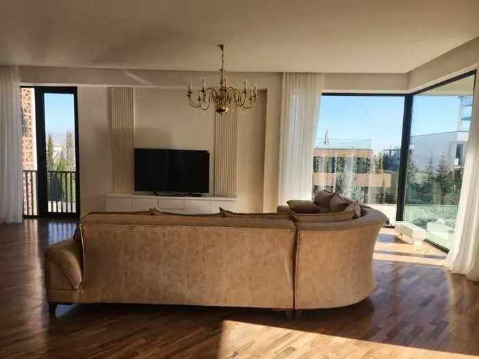 Пентхаус премиум класса в аренду в Крцаниси Вилла Резиденс. Преимущества проекта: 1. Консьерж-сервис. 2. Первый этаж, вестибюль, большой конференц-зал. 3. Сортировочная уборка. 4. Круглосуточная охрана периметра и здания. 5. Территориальное видеонаблюдение, контроль. 6. Бассейн 25/10 метров. 7. Бассейн на крыше на 14/4. 8. Фитнес-зал. 9. Теннисный корт. 10. Баскетбольная площадка. 11. Футбольное поле. 12. Современная площадь. 13. Беговая дорожка и велосипедная дорожка. 14. Закрытая парковка. 15. Катание на квадроциклах в горах.