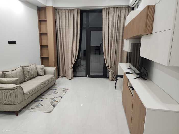 Я сдаю евро 2-комнатную квартиру с большой террасой в бизнес-комплексе Apex Lisi. 1-й этаж, 87 м². Основная информация о квартире: Первая аренда. Сделан современный дизайнерский ремонт с высококачественными материалами. Просторная гостиная объединена с кухней, в спальне есть выход на большую террасу. Квартира полностью меблирована и оснащена всей необходимой техникой. Есть пылесос, утюг, сушилка и гладильная доска. На кухне есть чайник, микроволновка, посуда и все необходимое для комфортной жизни. Есть полноценная двуспальная кровать и ортопедический раскладной диван.
