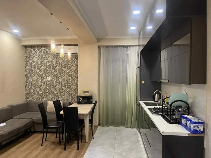 Лучшее месторасположение, зеленый двор. Светлая квартира, в каждой комнате есть окно. Отопление, горячая вода, кондиционер. Большая кухня со выходом на балкон. Лифта нет. Предоплата за два месяца!