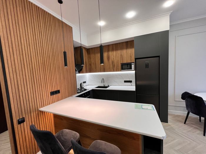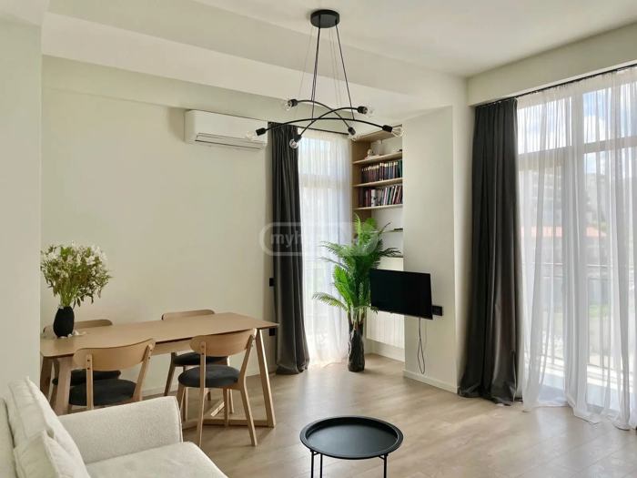 Квартира сдаётся в аренду на улице Нуцубидзе, в новом построенном доме, с отличным ремонтом и красивым видом. Напишите мне, и я отправлю вам видео.