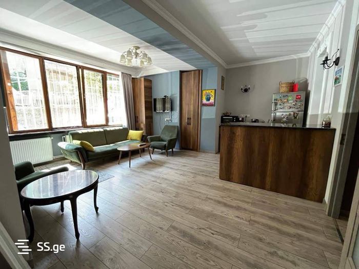 Сдается в аренду четырехкомнатная квартира со всеми удобствами в новом доме на улице Мцхета, недалеко от Круглого сада. Квартира имеет 3 спальни, кухню, оборудованную посудомойкой и новой бытовой техникой, а также действующий камин в столовой.