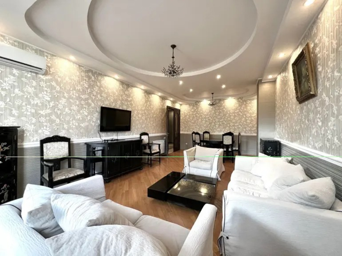 Квартира в аренду со всей необходимой мебелью и техникой (стиральная машина и посудомоечная машина). На улице Абуладзе, в центре посольств Турции и Чехии. Имеет большую гостиную, кухню, 2 спальни (1 спальня с собственной ванной комнатой), кабинет, 3 балкона, подземную парковку на 2 машиномест. Вход обеспечен и имеет видеокамеры.