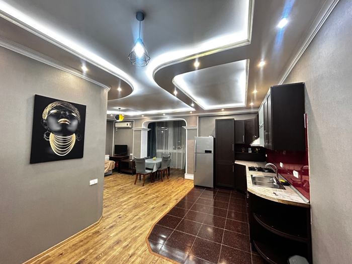 Сдается квартира в Ортачале на улице Горгасали #8, новый дом, 2 комнаты, 60 кв.м., новая отделка, центральное отопление, кондиционер, мебель, техника, хороший вид. Цена 500$
