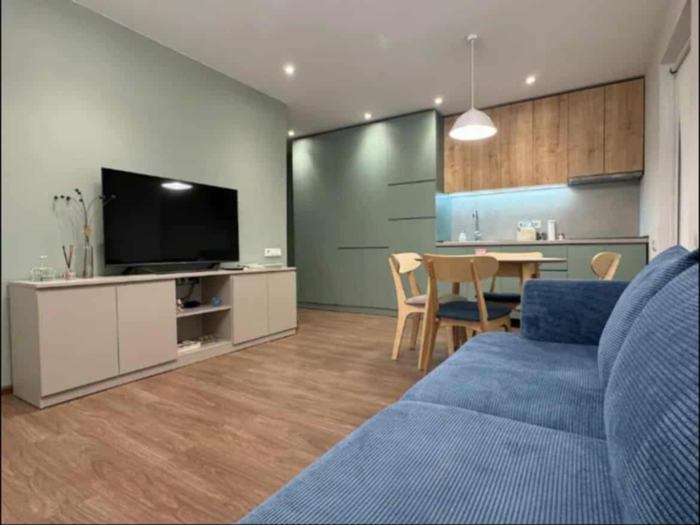 Квартира недавно отремонтирована, расположена напротив Экспо Грузии (выставки). Это очень теплая и солнечная квартира, на балконе стоит небольшой столик. В комнате стоит новая кровать с новым матрасом и новый удобный диван (раскладной). В квартире оборудована современная кухня.