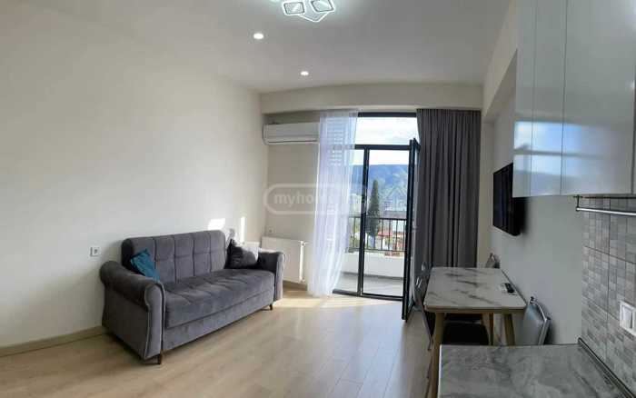 Сдается новая меблированная квартира с террасой в здании Авлабар. Квартира имеет 2 спальни и гостиную с витражным окном. Вид из гостиной потрясающий. Обе спальни выходят на балкон.