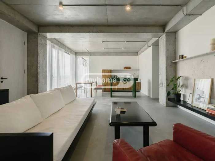 Недвижимость, расположенная на склоне Mtatsminda в Земо Вере, занимает площадь 100 кв.м. Квартира с минималистичным интерьером находится на третьем этаже четырехэтажного частного здания. В пространстве максимально используются древесные материалы и естественное освещение, что создает теплую и уютную атмосферу. Внутреннее планирование квартиры объединяет гостиную и кухню, в общей сложности 60 кв.м. В квартире есть одна спальня (25 кв.м), один санузел и два балкона с видом на город. Большинство мебели сделано вручную, в основном используются дерево и натуральные материалы. В вечерние часы квартира оснащена системой внутреннего освещения, которая придаёт пространству особый комфорт и уют. Локация идеальна для тех, кто любит тихую и экологически чистую обстановку — вдали от городского шума, но в то же время рядом с центром города.