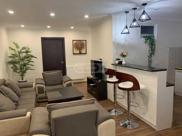 Сдается 2-комнатная квартира-студия с новым ремонтом (отопление центральное) в районе M _ ,,в лучшем месте,, рядом с 'Медициной'. Есть шлагбаум и парковочное место. В квартире новая мебель и техника высокого качества (кондиционер, стиральная машина, холодильник, телевизор и т.д.)