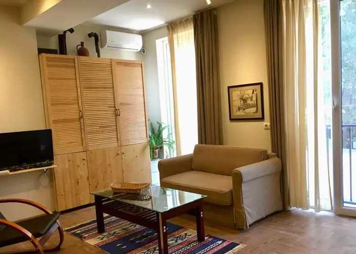 Адрес: район Мтацминда. Вера. Човелидзе #6 (бывшая улица Белинского) прямо над отелем "Room's Hotel." Квартира только что отремонтирована, с новой мебелью и техникой, только нужно заехать и жить. У квартиры есть собственная парковка (по необходимости). Примерно в 100 метрах находится автобусная остановка и станция метро "Руставели", магазины для продуктов и бытовых нужд.