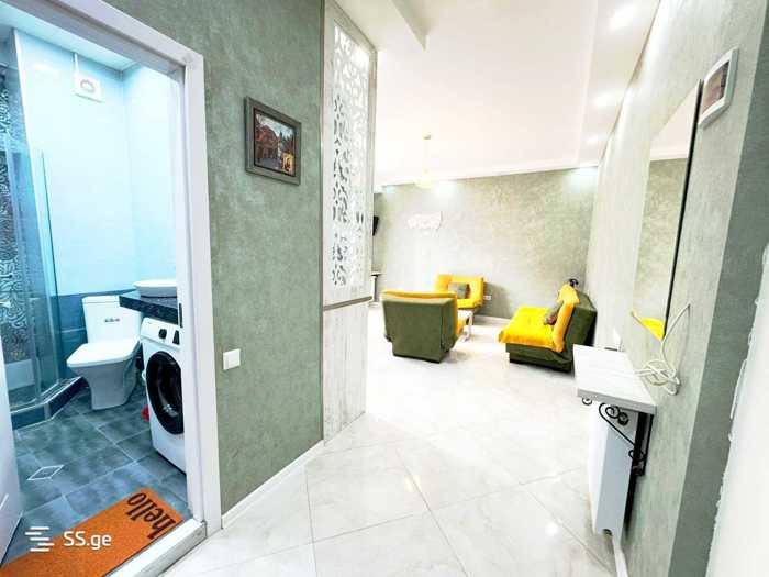 В старом Тбилиси, на Мтацминда, в Сололаке рядом с улицей Амаглеби 36, сдается 2-комнатная квартира в Эко Румис, 2-комнатная квартира на 6 месяцев, оборудована всей необходимой техникой, в квартире французский балкон, отличный ремонт, центральное отопление, полная мебель и бытовая техника, здание обслуживается ресепшеном, контролируется весь внешний вид и внутренний периметр. В квартире есть стиральная машина, телевизор с кондиционером, центральное отопление с микроволновой печью, утюг, фен, электрочайник, посудомоечная машина и другая необходимая техника. за 2 месяца вперед