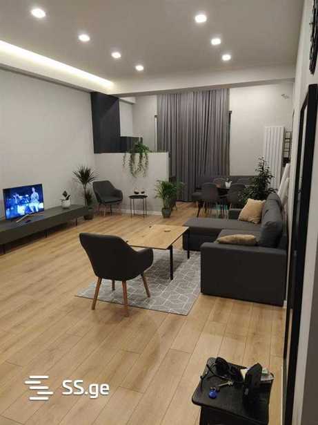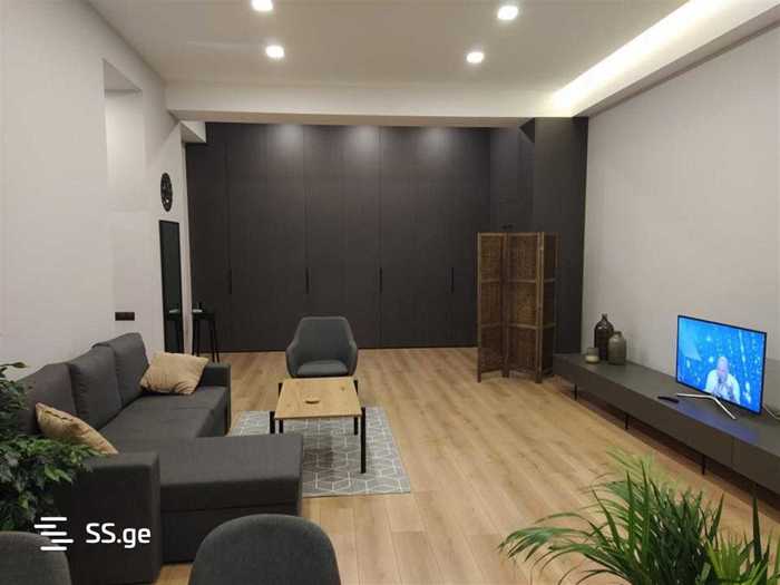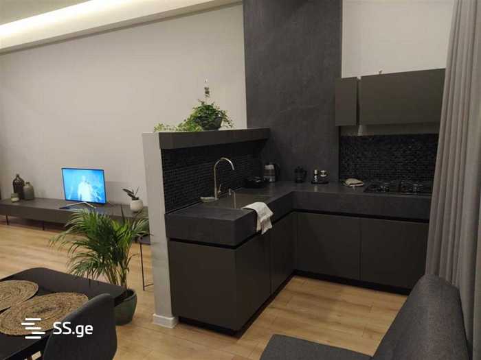 Сдается квартира на улице Цинтадзи #26 в Сабуртало, новый ремонт, 2 комнаты, 54 кв.м, с посудомоечной машиной, центральным отоплением, кондиционером, с хорошим видом, мебель новая, с техникой, цена 550$