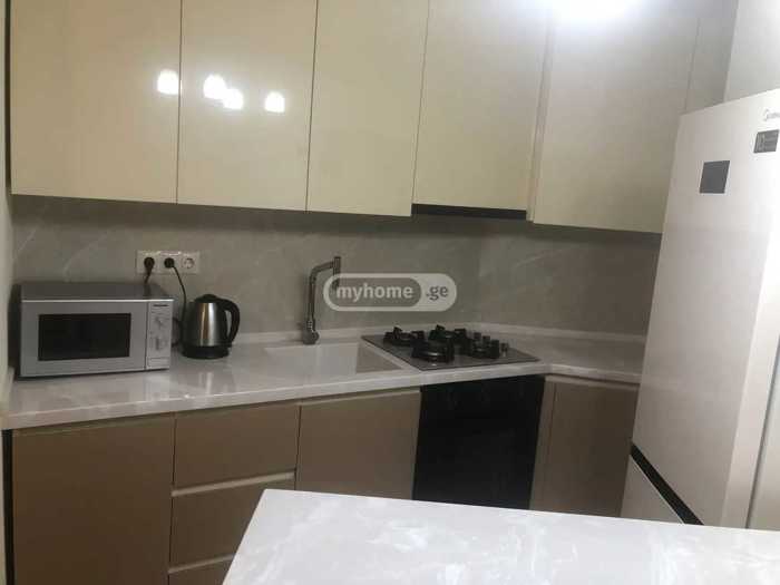 Сдается 2-комнатная квартира в массиве Дигоми, 55 кв.м. На улице Белиашвили, рядом с Академией дзюдо, в строящемся здании с евроремонтом, центральным отоплением, мебелью и техникой, цена 500$.