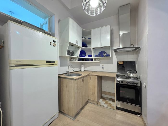 Сдается от собственника однокомнатная квартира с ремонтом и большим балконом (альтернативный номер телефона: 032 219 5059, не сотрудничаю с рэалторами т.е. с маклерами, просьба не звонить!), расположенная в экологически чистом районе, с нестандартной площадью и планировкой. Квартира расположена на втором этаже, с видом на парк, в 30 метрах от улицы. Он охраняется, имеет железную дверь, а также железные решетки и ставни на балконе. Квартира разделена на два пространства: в первом помещении находится прихожая, ведущая в кухню-столовую, и французская дверь, ведущая на балкон. При входе имеется совмещенный санузел с душем, умывальником и туалетом. Горячая вода подается с помощью качественного газового водонагревателя, установленного на балконе. Отопление осуществляется безопасным обогревателем типа Karma. Из прихожей мы попадаем в большую комнату, где совмещены функции спальни и гостиной. В комнате большое окно и выход на патио. Все окна и двери выполнены из высококачественного металлопластика, со стеклопакетами и противо-москитными сетками. Квартира оборудована всей необходимой бытовой техникой и мебелью. Квартира сдается в аренду сроком минимум на шесть месяцев за эквивалент 400 долларов США в лари на основании договора, заключаемого между владельцем и арендатором, при этом арендная плата за первый и последний месяц вносится одновременно в начале. Не сотрудничаю с реалторами т.е. с маклерами, просьба не звонить!