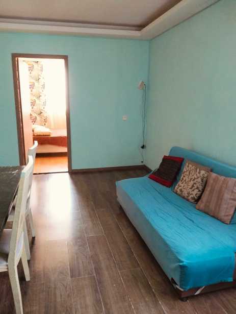 Сдается уютная, светлая, чистая квартира с мебелью и техникой в Мухиани. На машине до метро всего 5-7 минут, на автобусе максимум 15 минут, оплата за два месяца.