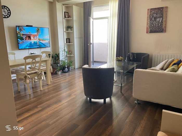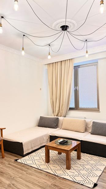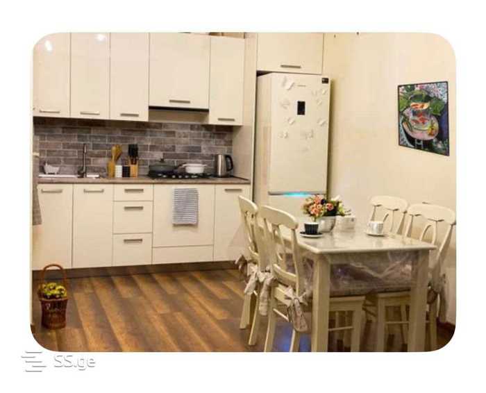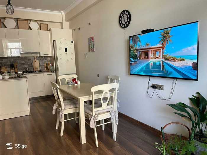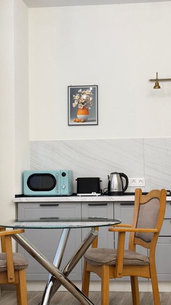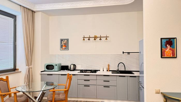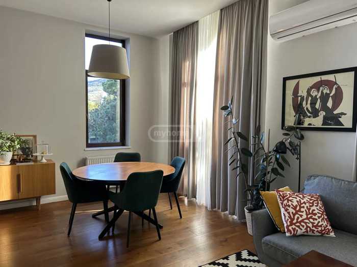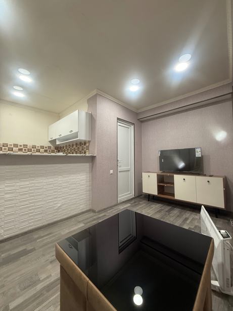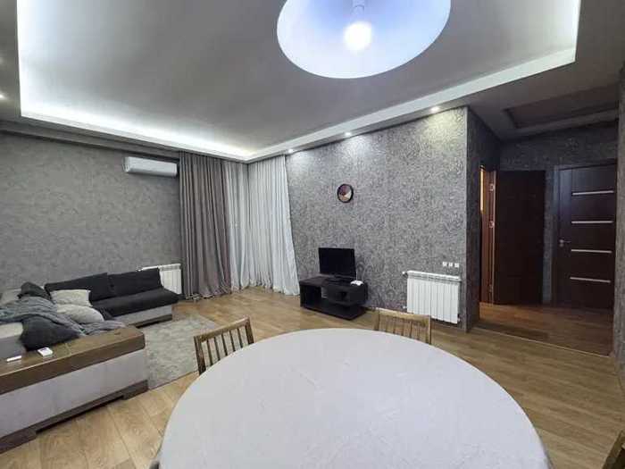 Сдается новая квартира нестандартного проекта площадью 56 кв.м, расположенная на пятом этаже 16-этажного здания. В квартире есть одна спальня и две комнаты, а также один балкон. В интерьере представлены уютная гостиная и столовая с большими окнами и стеклянной дверью, что обеспечивает естественное освещение. Кухня и столовая полностью оборудованы. Квартира выделяется современным дизайном и яркой атмосферой, создавая приятную и теплую обстановку. Защищенное и оборудованное камерами подъезд.