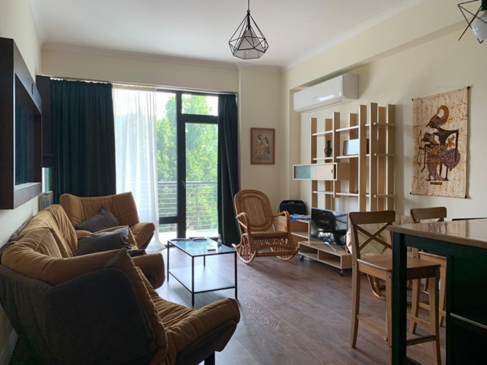 Недавно отремонтированная квартира в современном стиле недалеко от Центрального парка Тбилиси. • Квартира расположена в Ваке, на улице Тамарашвили, в экологически чистом и зеленом районе. • 20 этаж 26-этажного дома • Уютный французский балкон площадью 67 квадратных метров с прекрасным видом на парк • 2 комнаты, 1 спальня, 1 ванная комната • Квартира совершенно новая, нежилая, обставлена качественной мебелью, встроенной техникой и изысканным декором. Цена: 1300 долларов США. Срок аренды: минимум 6 месяцев.