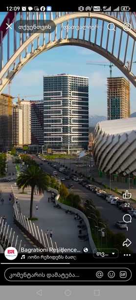 Сдаётся Студия 📍 Адрес: Bagrationi 129 Характеристики квартиры • Площадь: 30 м² • Этаж: 23-й (2 лифта) • Кондиционер • Теплый пол • Микроволновая печь Инфраструктура рядом • Море • Аллея Героев • Карфур • Агрохаб Стоимость 300 $ ( на год) 📞 Контакты для просмотра и деталейВатсап / Телеграм)м