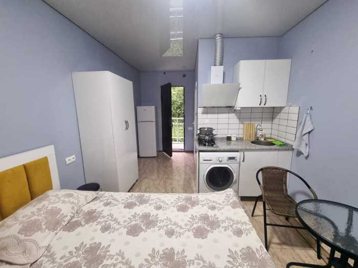 Сдаётся студия в отельном комплексе по адресу: ул. Квипароси, 29. Общая площадь апартамента 25 м², она расположена на 3-м этаже. Для комфорта предусмотрено центральное отопление. Апартамент полностью меблирован и оснащен техникой: стиральной машиной, микроволновкой, холодильником и кондиционером. Кухня полностью оборудована. Сдается сроком от 6-ти месяцев.