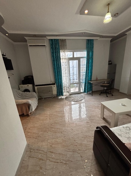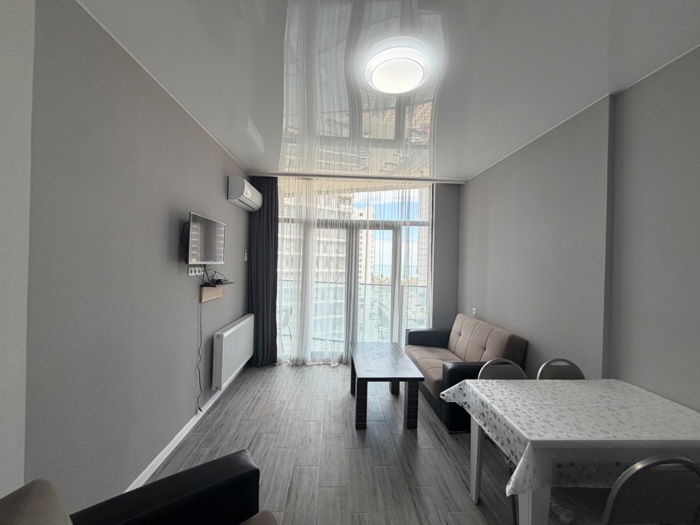 Новая квартира 1+1 с центральным отоплением и отдельной спальней доступна для аренды на год, у моря, 39 кв. м. Важно: никаких домашних животных, курение в квартире запрещено. (ул. Згвиспири, 1 - у моря, за парком 'Новый бульвар', рядом с метро Сити) Новые ремонты Первая аренда Центральное отопление Кондиционер Духовка Стиральная машина с сушкой Теплый пол на кухне и в ванной Отдельная спальня Балкон 39 м2 14/19 этаж Одна большая двуспальная кровать 160 см на 200 см и один раскладной диван 120 на 190 см.