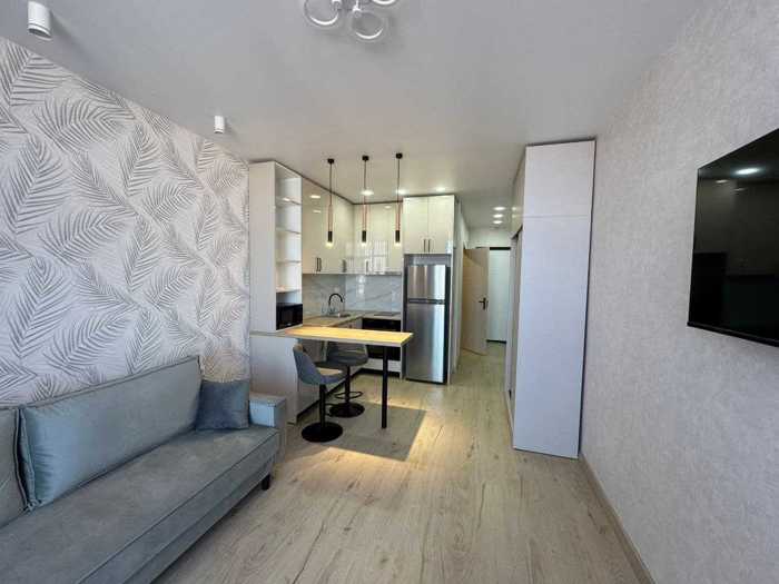Максимальная студия на проспекте Героев BST, блок B | Шартрава 16, 33 этаж, 30 м² Современное здание, новый ремонт Центральное отопление, газ, тепло Печь Большой холодильник Ортопедический диван
