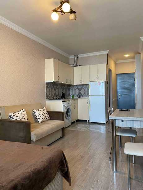 Сдается современная квартира 1+1 с видом на горы, по договору на 1+ год, на высоком 28 этаже с видом на горы. Восточно-Южная комфортная сторона. В гостиной: большой раскладной диван, обеденная группа на 4-х человек, комод с телевизором, кабельное телевидение и интернет проведено. В спальне: двуспальная кровать king-size, просторный шкаф-купе, рабочее место, регулируемое освещение. Кухня оснащена дорогой техникой – посудомоечная машина Bosch, духовой шкаф, вытяжка, большой холодильник, стиральная машина и др. В ванной теплые полы, зеркало с подсветкой, гидродуш и полотенцесушитель. Каждая комната имеет кондиционер и выход на широкий балкон. В доме 1 подъезд с ресепшеном, жилые квартиры начинаются с 13 этажа с 2 отдельными лифтами. На 5 этаже фитнес-зал с бассейном, сауной, массажем, где у жильцов этого дома есть скидка. Доступ к закрытой бесплатной парковке. Удобное расположение: в шаговой доступности круглосуточные продуктовые магазины, аптеки, магазины. До моря 1 минута, до Батуми молла 5 минут (390 метров), до супермаркета Carrefour 9 минут (740 метров). Оплата аренда + КУ (обслуживание 53 лари+вода, электричество, газ).