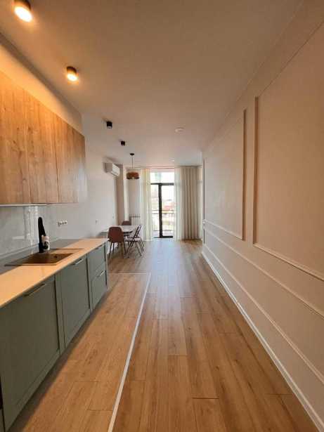 Квартира будет свободна с 29 декабря. Сдается современная квартира с новым ремонтом. Находится в центре города, в 5 минутах ходьбы от парка. Вокруг есть магазин и все что нужно для жизни. Подведен газ, и в квартире созданы все условия для проживания, включая посудомоечную машину. Здание новое, с современным лифтом. Место довольно спокойное и имеет двор, с видом на сторону города к морю, с закатом. (См. фотографии). При необходимости в квартире можно сделать перегородку и изолировать еще одну комнату.