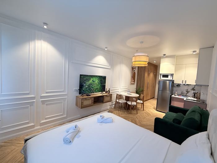 Сдается современная студия в новостройке с новым ремонтом. Полностью меблирована и оборудована всей необходимой техникой. В квартире есть посудомоечная машина, дом находится в 1 километре от станции метро Ахметели. Во дворе района расположены супермаркеты и аптеки. Квартира сдается на срок минимум 1 год. Необходимо предварительно оплатить первый и последний месяцы. У нас также есть видео квартиры, свяжитесь с нами через WhatsApp или позвоните!