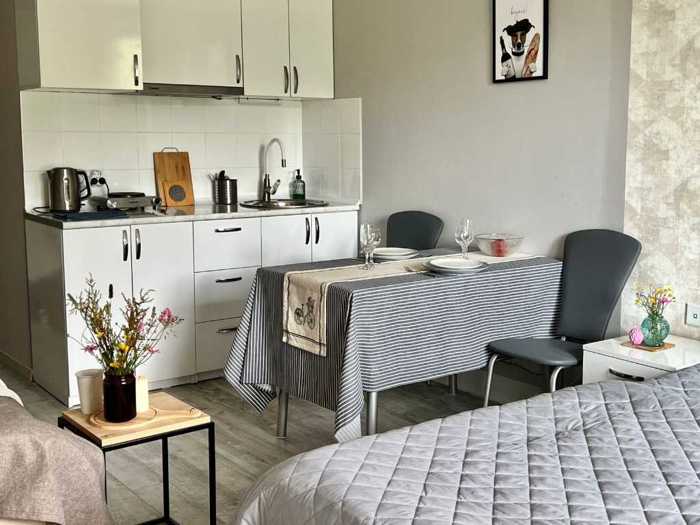 Отличная студия на самом популярном горнолыжном курорте Нового Гудаури. Очень уютная студия полностью меблирована, есть вся необходимая техника и текстиль, посуда. Дом расположен рядом с центральной гондолой (подъемник). Общая площадь 28 кв.м. Подходит как для жилых, так и для инвестиционных целей. Жилой комплекс New Gudauri by Redko
