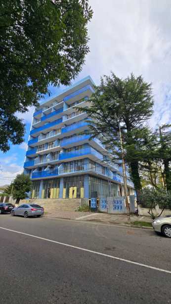 В новом корпусе на улице Агмашенебели, среди сосен, продается трехкомнатная квартира площадью 60 кв. м, с двумя спальнями, балконом, renovated, мебелью, с панорамным видом, в лучшей климатической части курорта, в 30 метрах от моря.