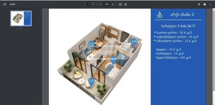 Продается от собственника, newly renovated, не обжитая квартира в Самгори. 🌸50,3 кв/м - с одной спальней. 🌸9-й этаж в 16-этажном здании. 🌸7 Тбели Абусеридзе или 71 Кетеван Цамебули. 🌸Вид на Ортачалу и Мтацминду. 🌸Новая бытовая техника. 🌸Балкон со складом. 🌸Два лифта. 🌸5 минут пешком до станции метро Самгори и 10 минут до станции Исани. 🌸Оценка TBC банка - 76,500 $ 🌸Цена - 80 000 $ Могу показать видео квартиры. Свяжитесь со мной по номеру +33768708806