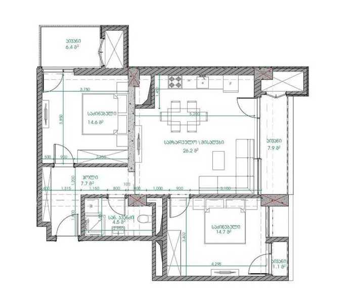 Цена окончательная!!! Продается 3-комнатная угловая квартира, все комнаты с отдельным освещением и изолированным водоснабжением! Сторона горы Мтацминда, обращенная к восходящему солнцу. В состоянии зеленого каркаса! Кухня изолирована (возможно сделать 3 спальни за счет студии, комплекс населён) в престижном комплексе 'Парк Хоум Сабуртало', по адресу: пересечение улицы Весны и улицы Нуцубидзе, 5 минут пешком от метро Дели. Этаж: 8/26, 2 спальни. За зданием присматривает консьерж, охрана 24/7, есть бассейн, рядом находится торговый центр Сити Мол, медицинский университет, супермаркеты, аптеки, рестораны, кафе и все необходимые учреждения.
