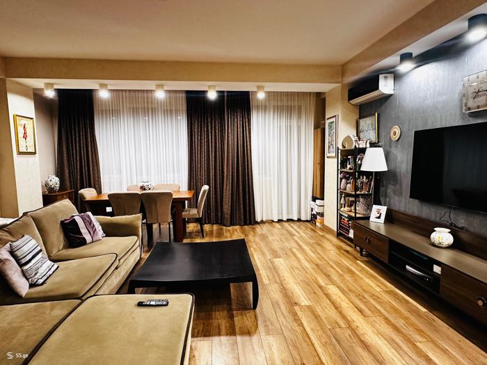Продается 3-комнатная квартира в Сабуртало, ул. Цагарели, 70 кв.м., 2 спальни, 9/10 этаж, в новостройке, с новым ремонтом, угловая квартира, поэтому она довольно светлая, уютная и теплая. У дома есть 2 балкона, один из спальни и один из гостиной, с мебелью и техникой. 145000$.