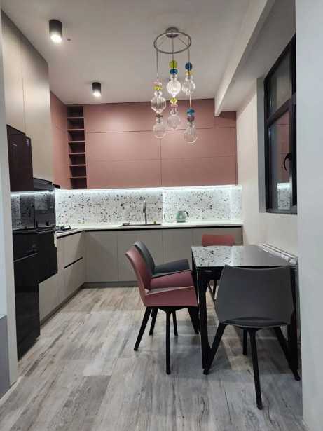 Продается новая квартира с ремонтом. Внутренняя площадь составляет 47,1 квадратных метра, плюс прилагается 15,6 квадратных метра двора, который огражден и благоустроен. Квартире хорошо светит солнце, поэтому она очень светлая. В квартире установлены встроенная мебель и бытовая техника. Также имеется санузел. При ремонте использовались материалы высшего качества из Европы. Также можно приобрести подземную парковку за 10 000 долларов, которая не входит в эту цену, однако при совместной покупке будет рассмотрена возможность скидки.
