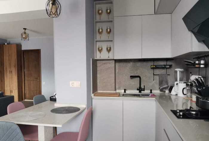 Продается: 43 кв. м, новая отделка, двухкомнатная квартира, светлая спальня, один санузел, балкон, меблированная, парковочное место в новом здании.