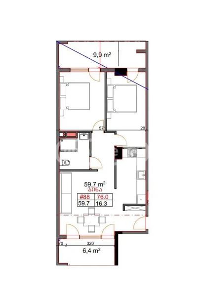 Продается в Диди Дигоми в лучшем месте в новостройке, белая коробка, 85 кв. м.