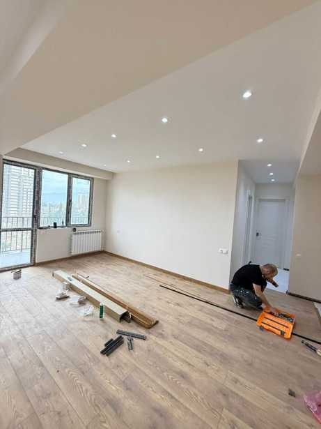 Квартира расположена перед станцией метро Гоцридзе, на улице Нинуа, в новостройке, с новым не заселенным ремонтом, встроенной кухней, мебелью и техникой. 2 изолированные спальни, обе с первичным освещением.