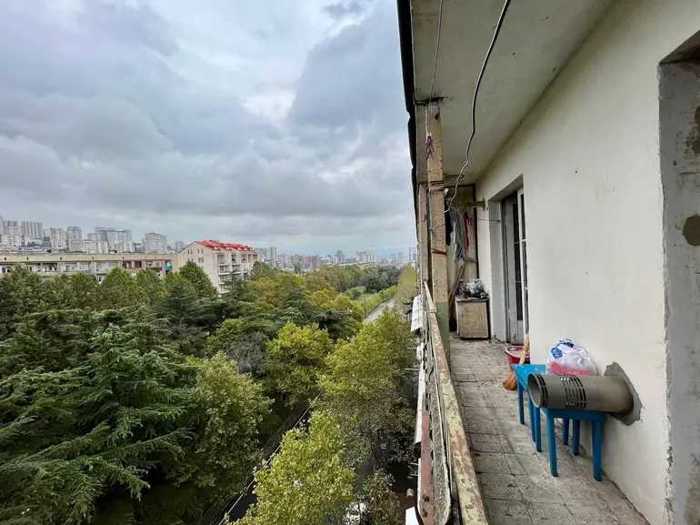 57 кв.м. квартира рядом со станцией метро Государственного университета. На третьем этаже за эквивалент 95000 долларов в местной валюте. С ремонтом, две спальни (обе с основным освещением), изолированная кухня (вид во двор), с мебелью (эмбавуди) и техникой. С интернетом, отоплением, горячей водой, кондиционером и телевизором.