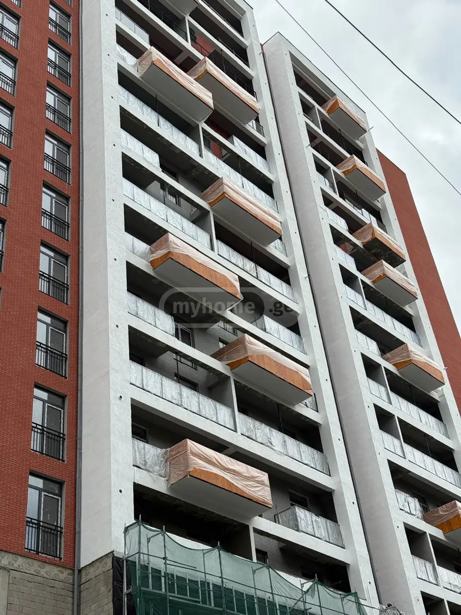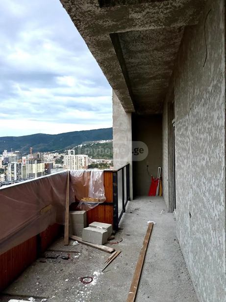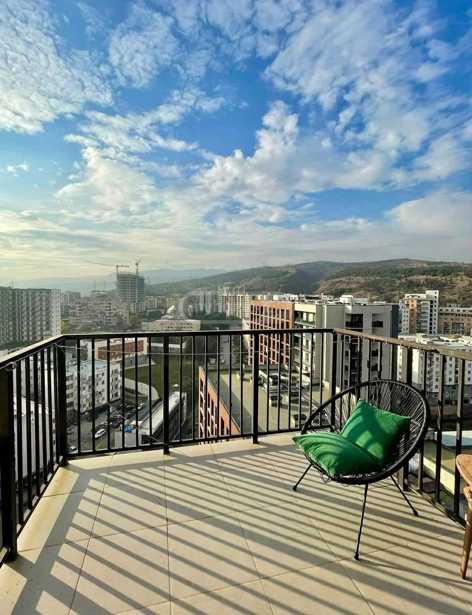 Продается 2-комнатная квартира в Сабуртало, ул. Э. Миндели, в 500 метрах от метро, 73 кв. м. (по документам 60 м² квартира + 13 м² терраса), 10/13 этаж, 1 спальня, студия + кухня, санузел, балкон, вид на город и Мтацминду, зеленая рама, 108000$