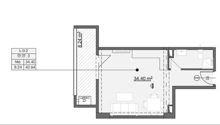 Продается студия площадью 42.64 м² в практически завершенном здании премиум-класса. Жилая площадь составляет 34 м², балкон 8 м². Находится рядом с последней остановкой автобусного маршрута 413 во втором микрорайоне Варкетили. Цена за квадратный метр - 920 долларов.