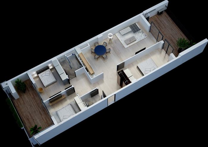 Продается 5-комнатная двухуровневая квартира на улице Бочорми, в строящемся доме. С 4 отдельными спальнями, отдельной кухней, мебелью и техникой. С прекрасным видом, верандой.