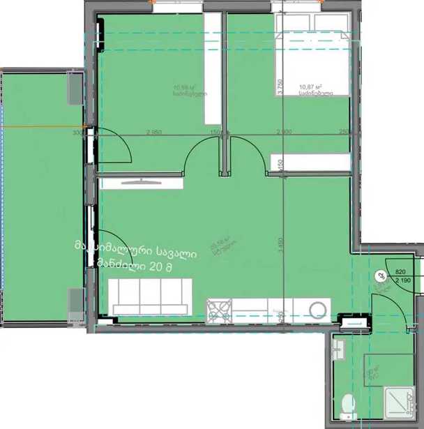 Продается квартира 56.11 м² на улице Бесарион Джгент #13. Строительство завершится в октябре 2026 года. Квартиру можно купить через внутренний беспроцентный рассрочку: ✨10% - первоначальный взнос ✨20% - в процессе строительства (ежемесячные платежи) ✨70% - по завершении Проект Нова Нуцубидзе полностью финансируется банком Базис. Скидка применяется в случае покупки с ипотекой от банка.