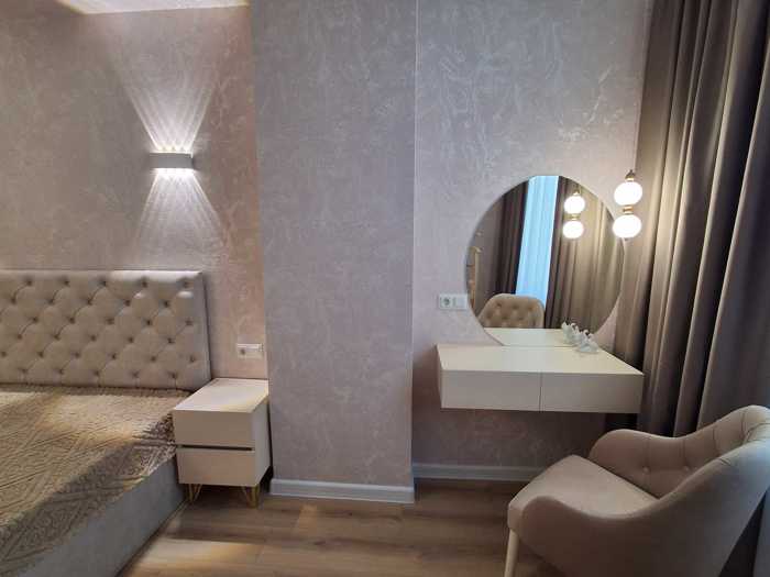Здание расположено на Московском проспекте, на территории бывшего небольшого рынка, изолировано и огорожено забором с большим двором, здание энергоэффективное. Имеется 2 лифта, подземные и надземные парковочные места, будет обустроена зеленая зона... В квартире одна большая спальня. Ремонт выполнен качественно, из самых лучших и качественных материалов: немецкие обои, испанская плитка, турецкий ламинат класса 32/С4, алюминиевые радиаторы (рассчитаны с резервированием), потолочные светильники Panasonic, качественный тропический душ, смеситель и санузел. плитка, шкафы, натяжной потолок barisol, железная дверь и балкон покрашены греческой краской. Сантехника полностью выполнена из материала фирмы Firat. Это красивая квартира, вы сами в этом убедитесь, когда увидите ее.