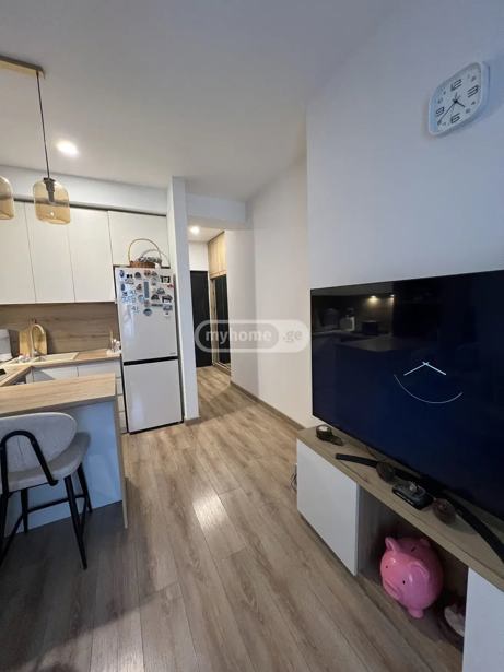 Новая построенная квартира площадью 31 кв. м, с мебелью и техникой. Центральное отопление, кондиционер, стиральная машина, холодильник и вся мебель остаются.