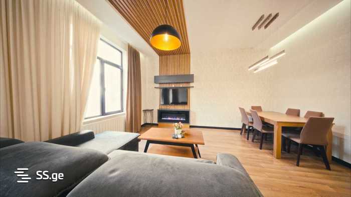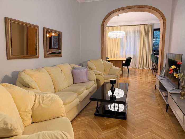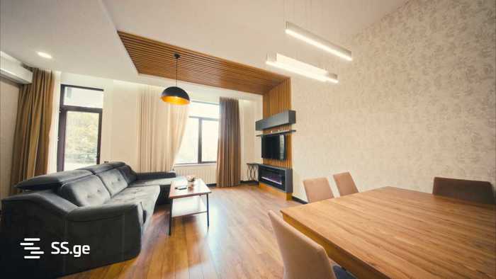 Продается 3-комнатная квартира на улице Мцхета. Общая площадь: 118 м². На 5-м этаже новостройки. Новый ремонт, кухня-гостиная открытого типа, 2 спальни, 2 санузла и балкон. Квартира продается с мебелью и техникой. Входит парковочное место.