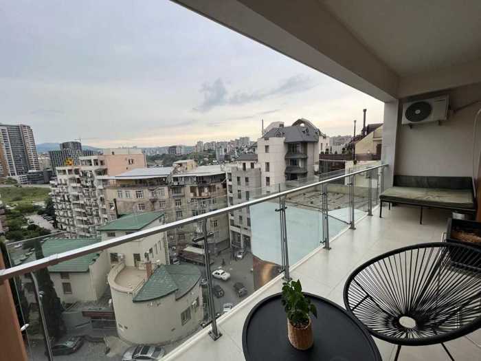 Продается 3-комнатная квартира с 2 спальнями на улице Рамишвили, в здании Европродукт. Общая площадь: 74 м². На 7-м этаже новостройки из 13 этажей. Новая отделка, кухня-студия с гостиной, 2 спальни, 1 санузел и 2 балкона. Установлено центральное отопление и кондиционер. Квартира продается с техникой и мебелью.