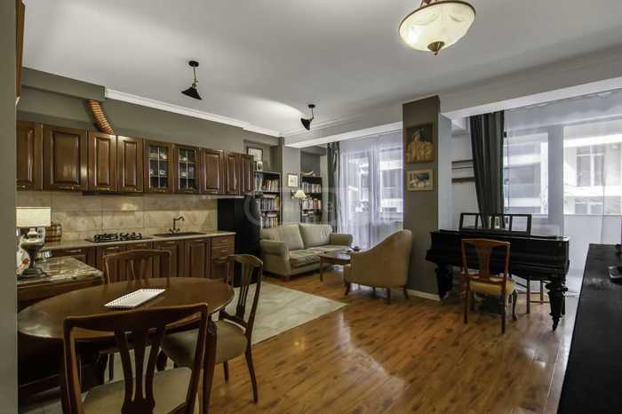 |Продается квартира рядом с круглым садом, дизайнерская, красивая, с высокими потолками, угловая и проходная. С новым ремонтом, с использованием материалов высшего качества и техникой премиум-класса. Центральное отопление, 2 кондиционера, деревянный паркет. Кухня представляет собой смесь антикварной мебели и массивной дубовой мебели, изготовленной компанией 'Casa Verde'. Из того же материала изготовлены полки для библиотеки и мебель для ванной. В квартире три спальни, две из которых имеют собственные гардеробы, а в одной спальне большой встроенный шкаф. В квартире проведён интернет и телевидение во всех комнатах. 2 балкона, 2 ванных комнаты, подвал, в подъезде имеется кладовое помещение, двор закрывается шлагбаумом и есть место для парковки. Защищенный подъезд, 2 лифта - грузовой и пассажирский. На квартиру зарегистрирована бесплатная парковка в Тбилиси на 2 машины.