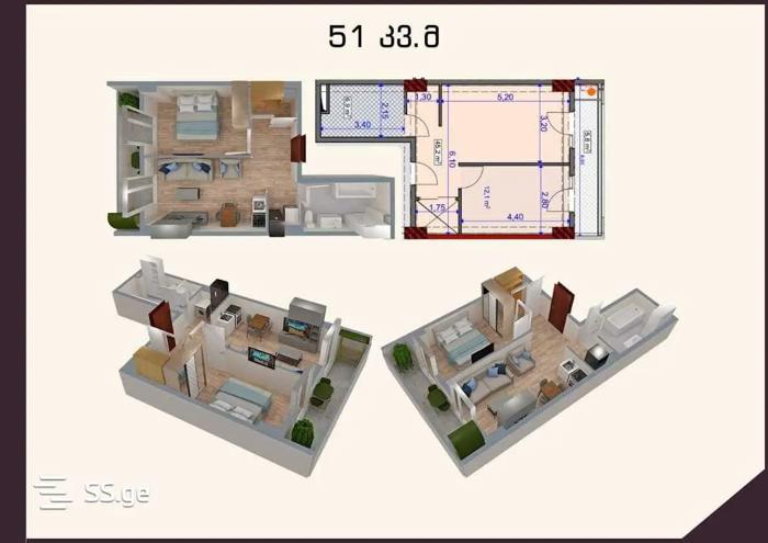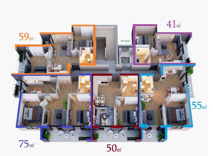 Продается 3-комнатная квартира в Глдани. Это будет солнечная и светлая угловая квартира. Окна выходят на юго-запад. У квартиры идеальная планировка, при желании можно сделать 2 спальни и изолированную кухню с гостиной. Проект ориентирован на будущее, строительство начнется в январе 2026 года и закончится в декабре 2027 года. Поскольку сейчас идет период предварительных продаж, вы можете приобрести квартиру на лучших условиях. Действует внутренняя рассрочка на 24 месяца, первоначальный взнос от 5000$; ежемесячный взнос от 500$. Если взносы будут выше, будет предоставлена скидка. Проект будет современным 8-этажным зданием, соответствующим последним стандартам, с двором и озеленением. Адрес: Глдани, Герой Курсантов 1-й переулок N3 (рядом с полицейской академией)