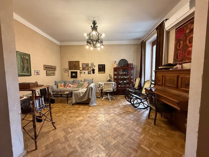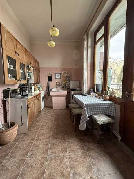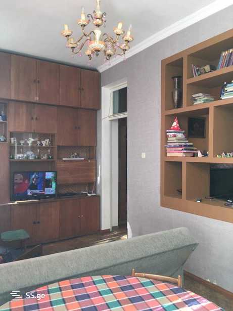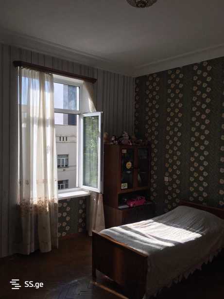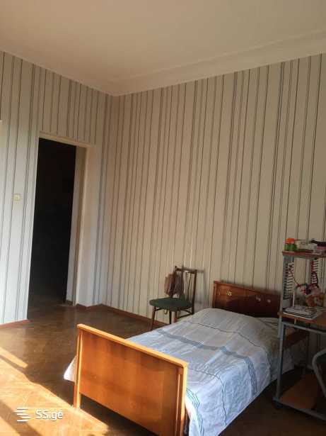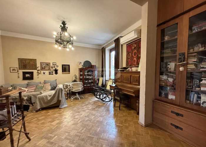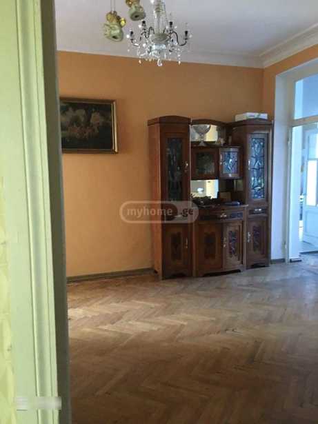 Продается тихая и красивая квартира в спокойной части Ваке, 1-й переулок Аракешвили (в настоящее время улица Б. Шошиташвили). Площадь - 90,3 м². Количество комнат: 3 спальни, 2 отдельные кухни, 1 балкон (с выходом на тихую сторону), 1 санузел (туалет и ванна раздельные), 1 шкаф, 1 подвальное помещение (7 м²), высота потолка 3,30 м, старая отделка, этаж 4/5, центральное отопление, горячая вода, природный газ. Парки рядом (парк Ваке, парк Мтацминда)