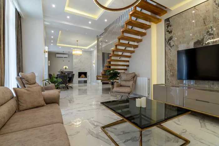 Продается renovated роскошная квартира, отделанная высококачественными материалами. Проектировал дизайнер. Цена очень хорошая, ниже рыночной. Срочно. Агентствам недвижимости не звонить с предложениями. Квартира - дуплекс площадью 253 кв. м. 🔴Первый этаж🔴 Гостиная Кухня Туалет Техническая комната Терраса Балконы 🔴Второй этаж🔴 4 спальни, одна из которых - мастер. Санузел Балконы. Потолок на втором этаже нестандартный.