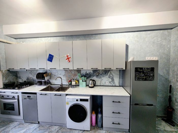 Продается квартира на улице Цретелев, на улице Рафаэла Агладзе. Высокий первый этаж, недавно отремонтирован. Квартира включает 3 спальни с встроенными шкафами, гардеробную, большую гостиную, 1 ванную и туалет с дополнительным отдельным туалетом, балкон и отдельную кухню со встроенной мебелью и техникой (кроме холодильника). Общая площадь составляет 130,33 м². Цена - 130 000$.